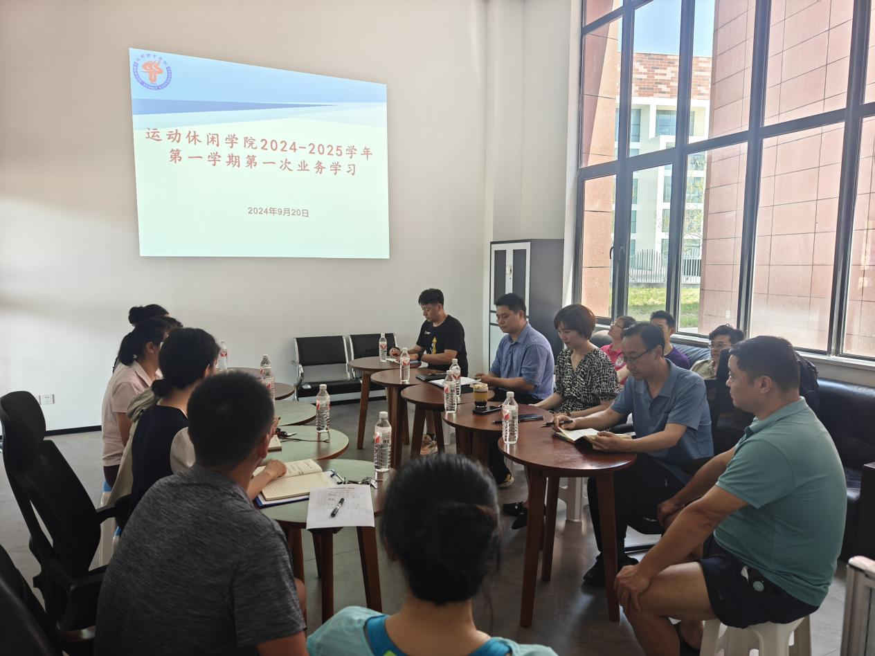 2024年9月20日,运动休闲学院在运动休闲馆休闲体育系会议室组织开展2024-2025学年第一学期第一次业务学习。会议由副院长蒋书君主持,学院全体教师参加。